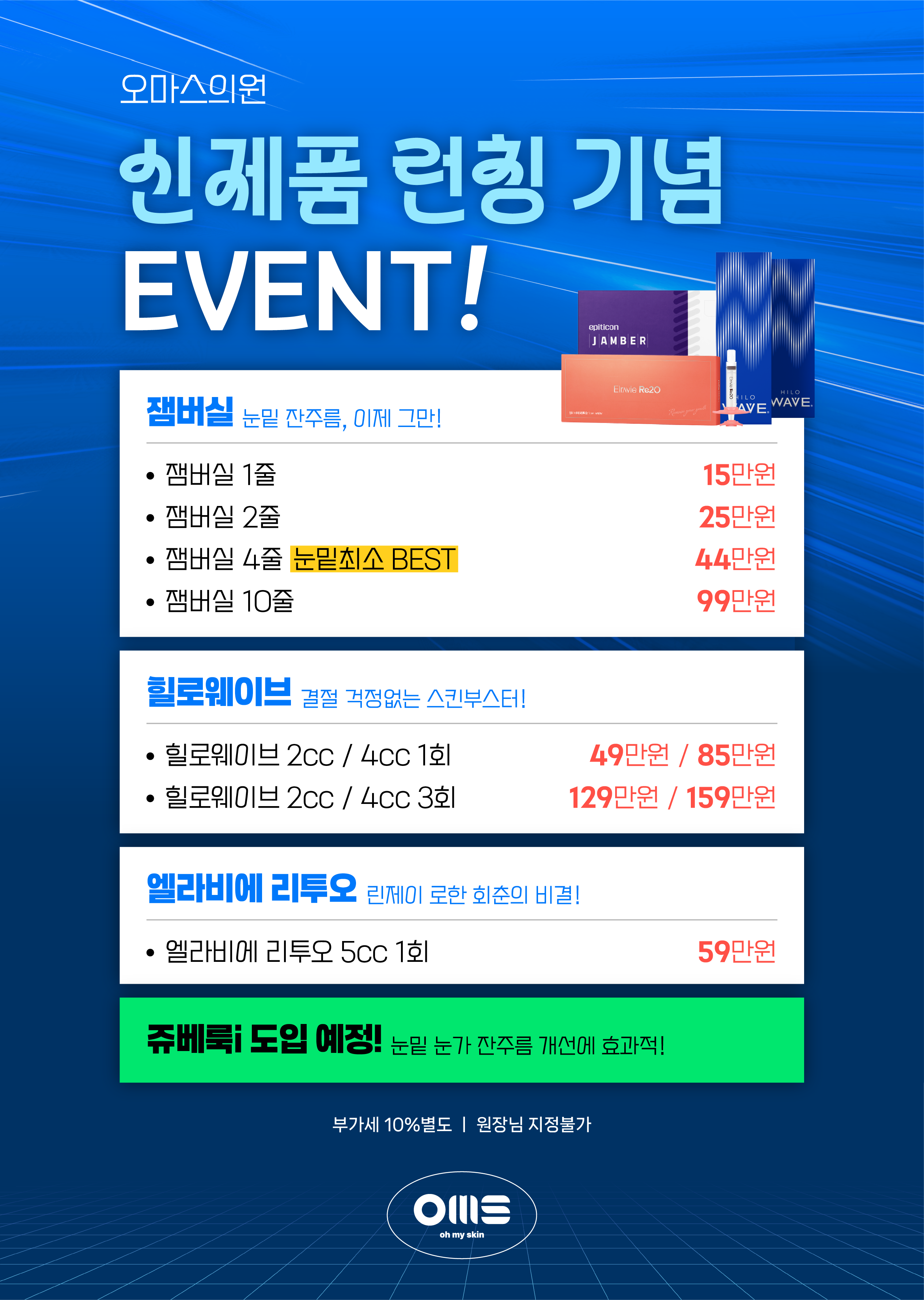오마스의원 한국어 영어 중국어 일본어 태국어 대만어 베트남어 오마스 이 달의 이벤트를 확인하세요! 이벤트 보러 가기 이벤트안내/가격 이벤트 이벤트 실제치료사례 오마스소식 공지사항 리뷰 신제품 런칭이벤트! 썸네일 신제품 썸넬.png (대표) 목록